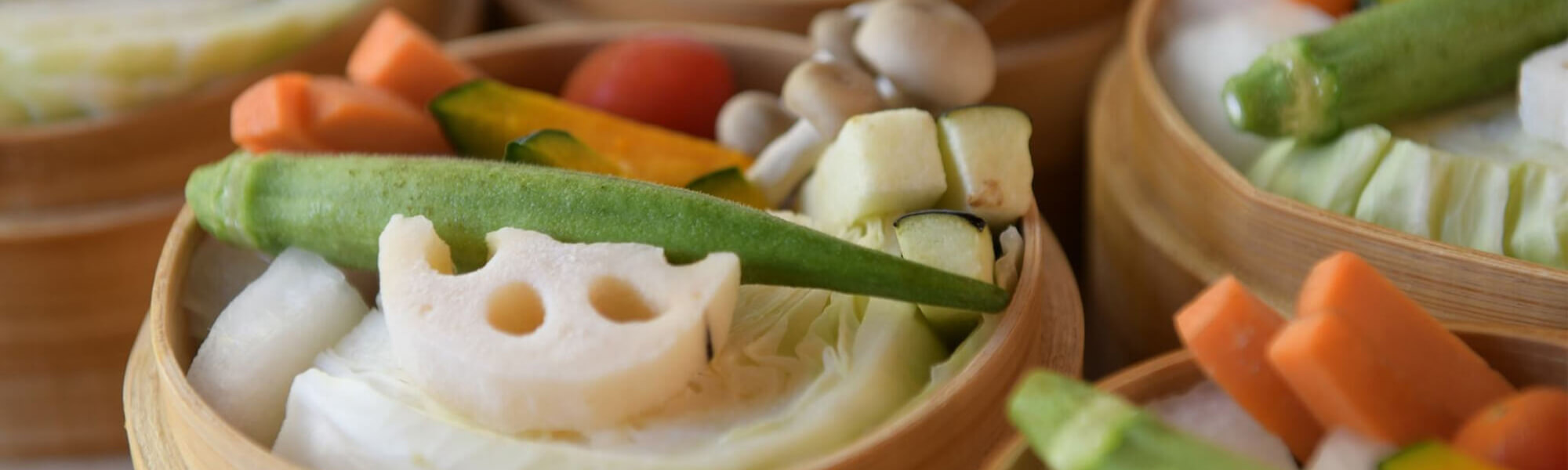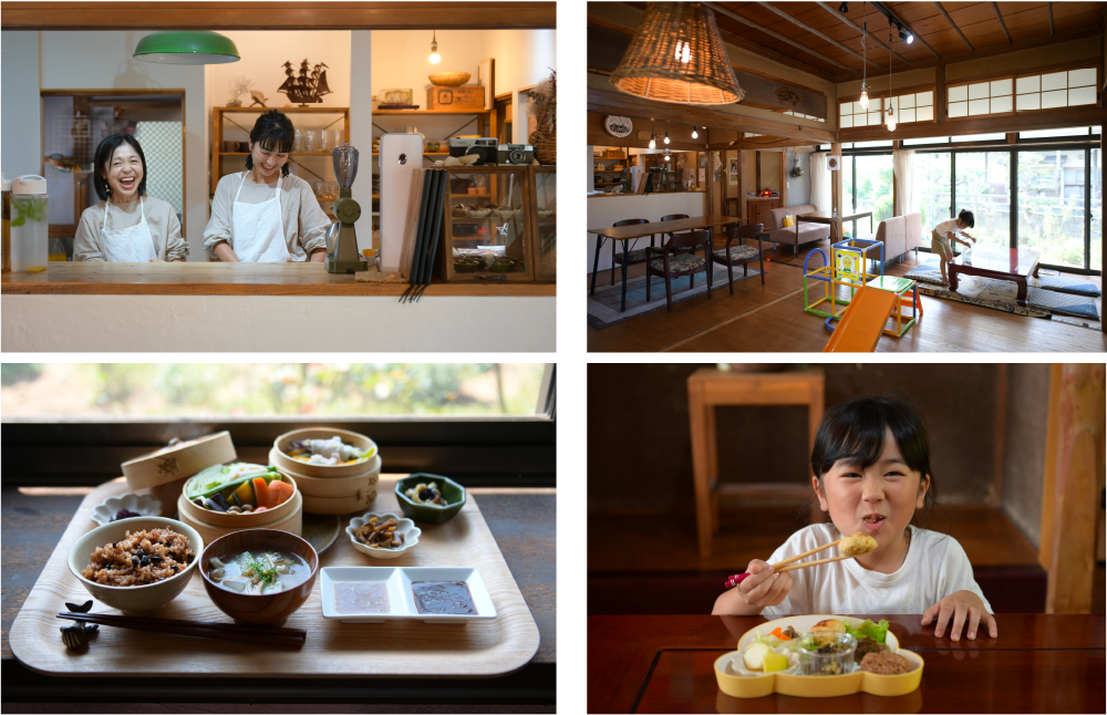 地元の旬のお野菜をたっぷりと使ったせいろ蒸しやサラダランチ、江田島産猪肉を使った山くじらスパイスカレー。